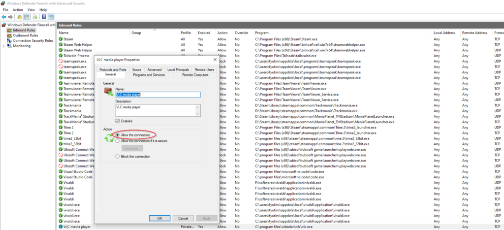 2. Make sur VLC is allowed on the Windows Defender Firewall